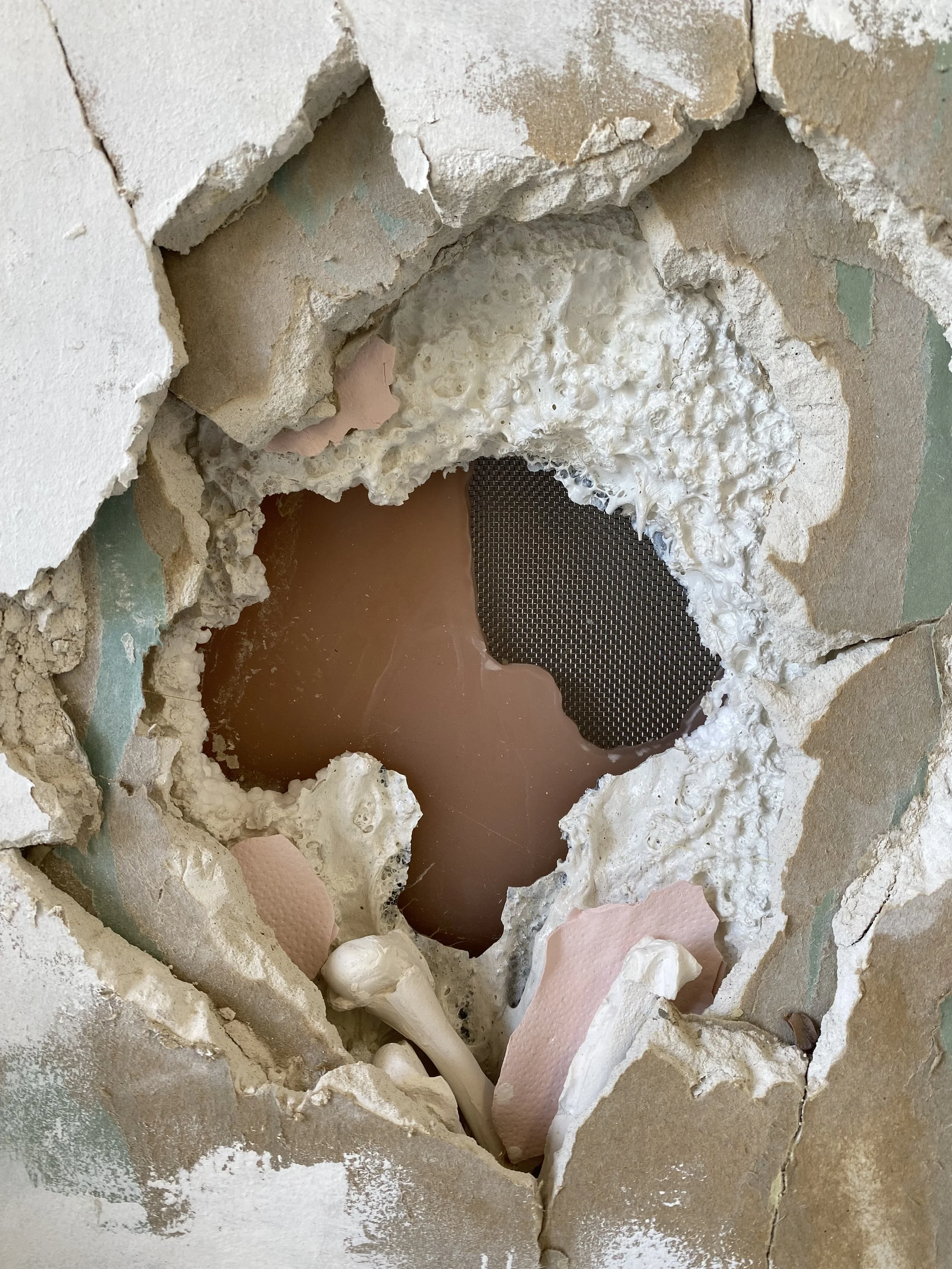 Amélie Bernard, Broken Skins, 2021, 27 x 32,5 cm, sculptures et techniques mixtes : placo, plâtre, polystyrène, cire colorée, grillage métallique, bois, courtesy of the artist