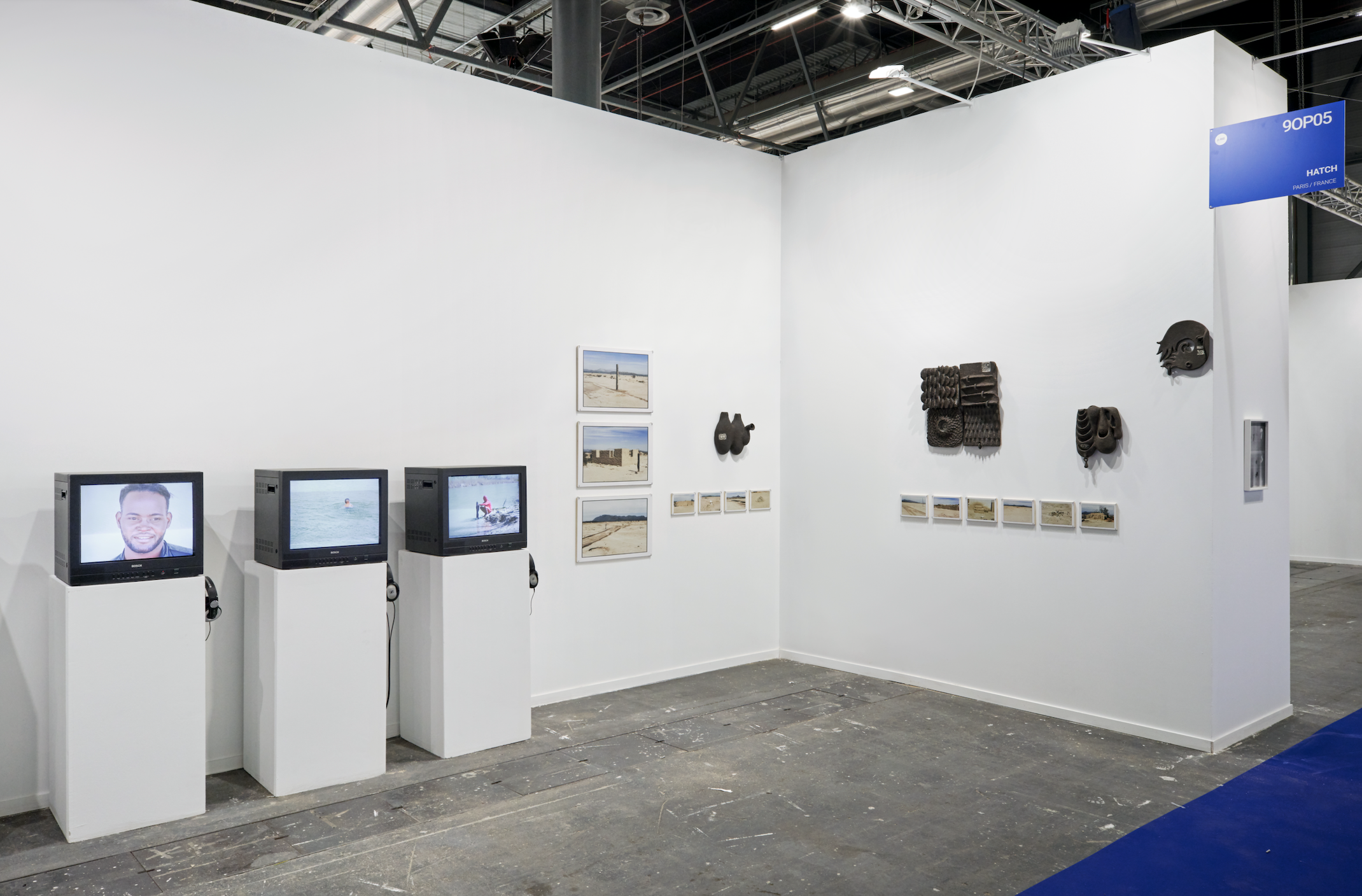 Installation view from Felipe Romero Beltrán and Ayla Tavares duo presentation at ARCOmadrid with HATCH, 2024, Madrid. Photo: Choreo. Courtesy of the artists and Hatch Gallery.