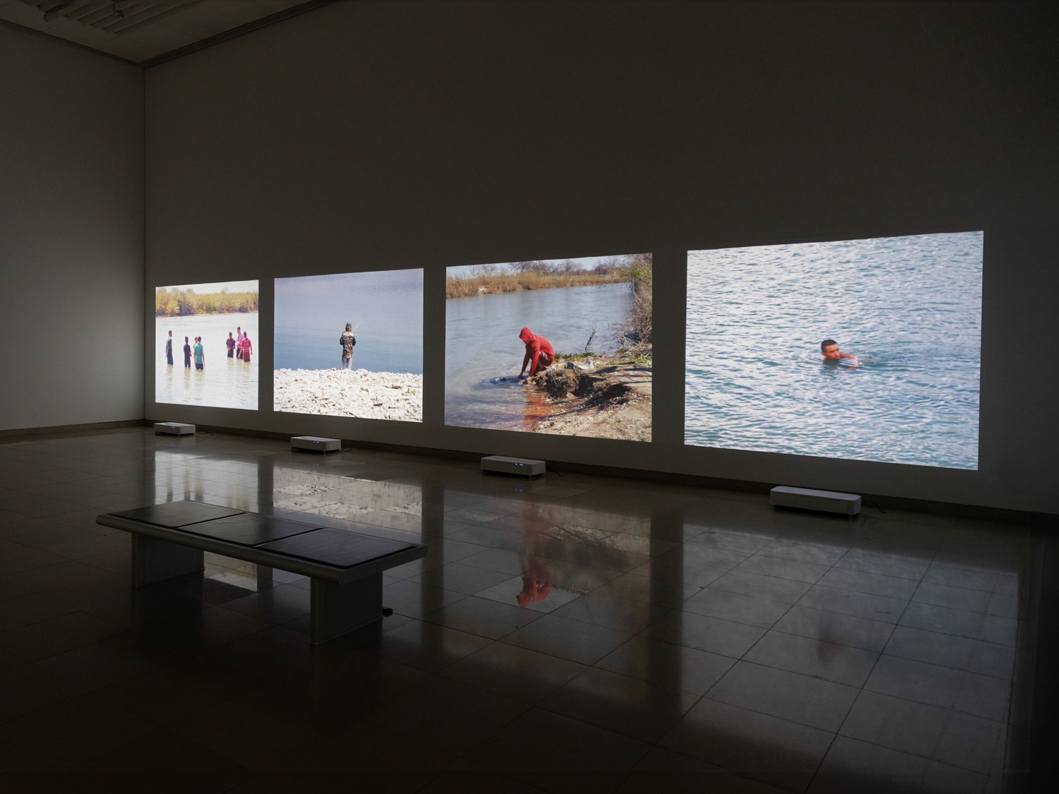 Three-channel video (color and sound), ’15’'46, Ed. 1/ 3 + 2AP.