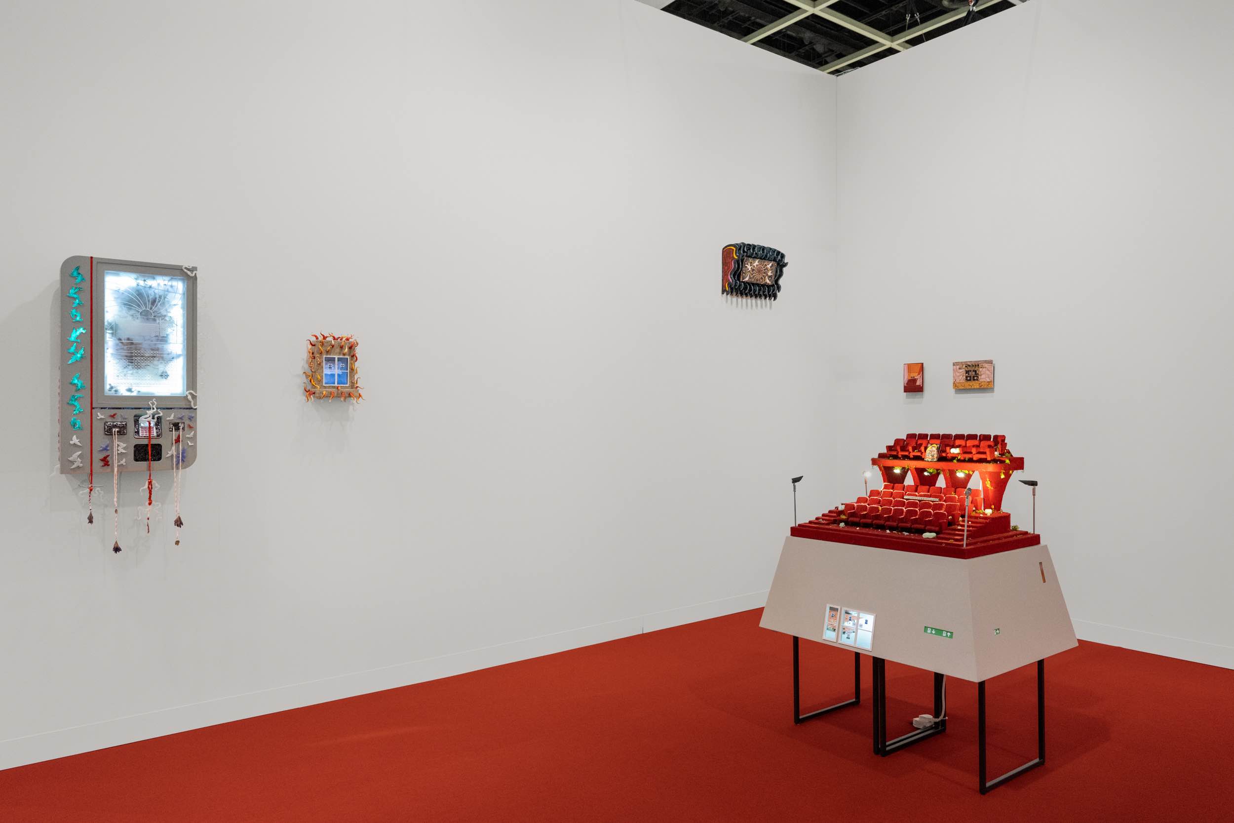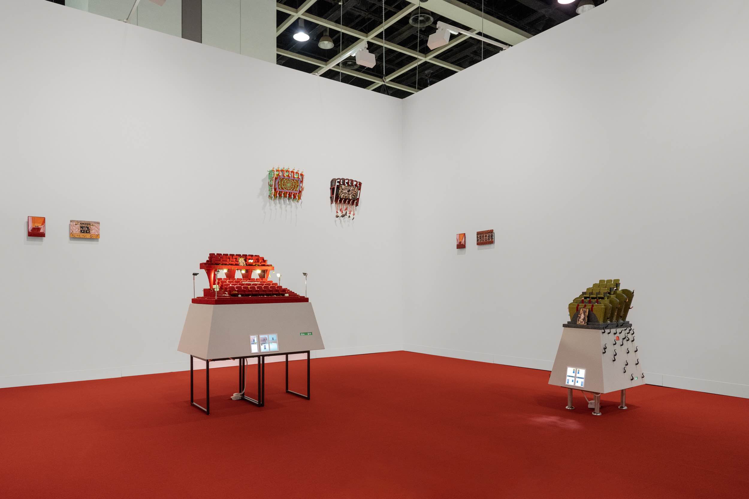 Installation view, Kara Chin: Shh the Film Is Starting at Art Basel Hong Kong with Linseed Gallery, Basel, CH, 2024. Courtesy of the artist and Linseed Gallery.