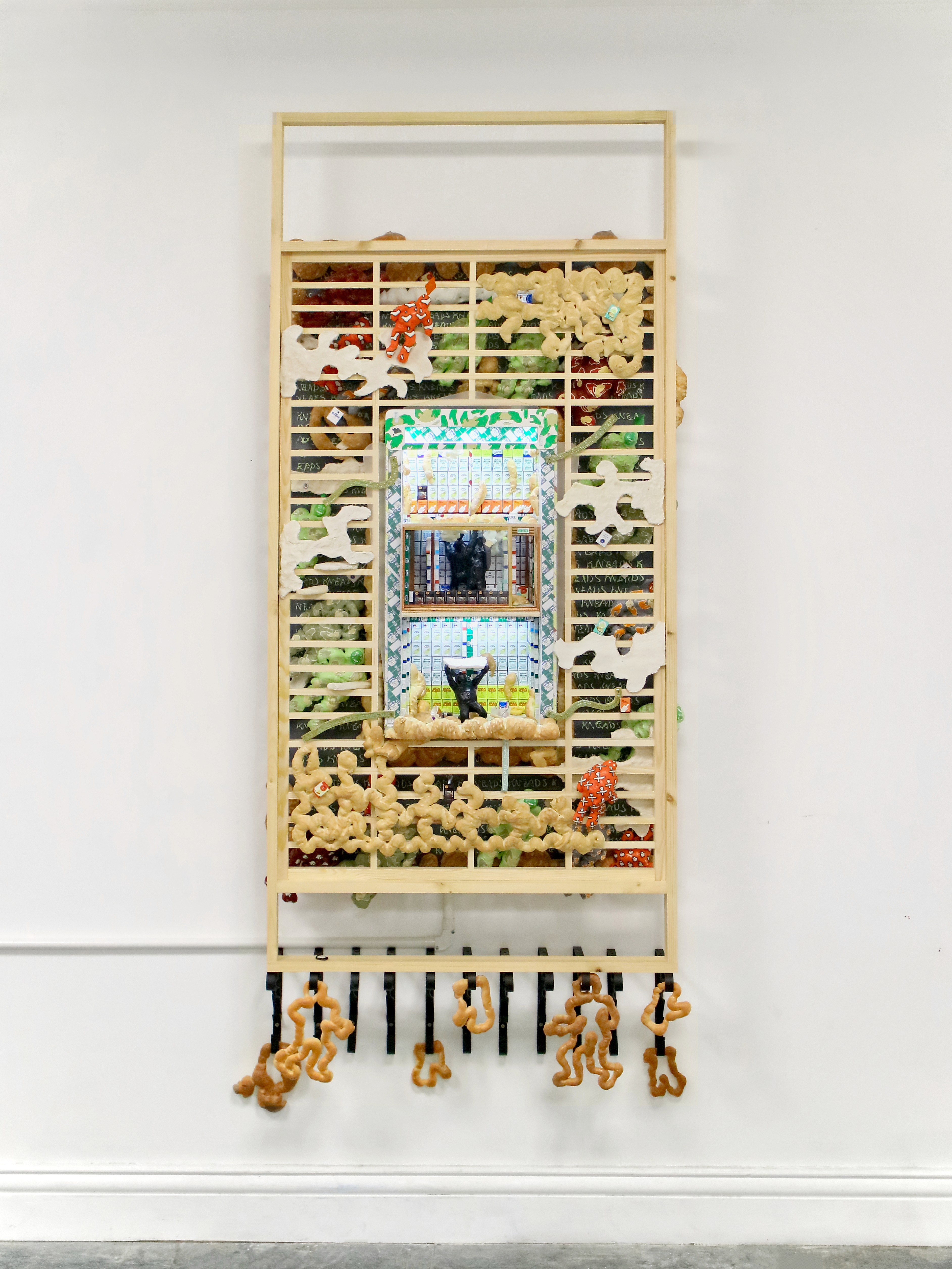 Timber, acrylic_oil_spray paint, expandable foam, salt dough, lacquer, printed card, milliputti, dollhouse items, glass, perspex, LEDs, other mixed media, 193 x 80 x 30 cm