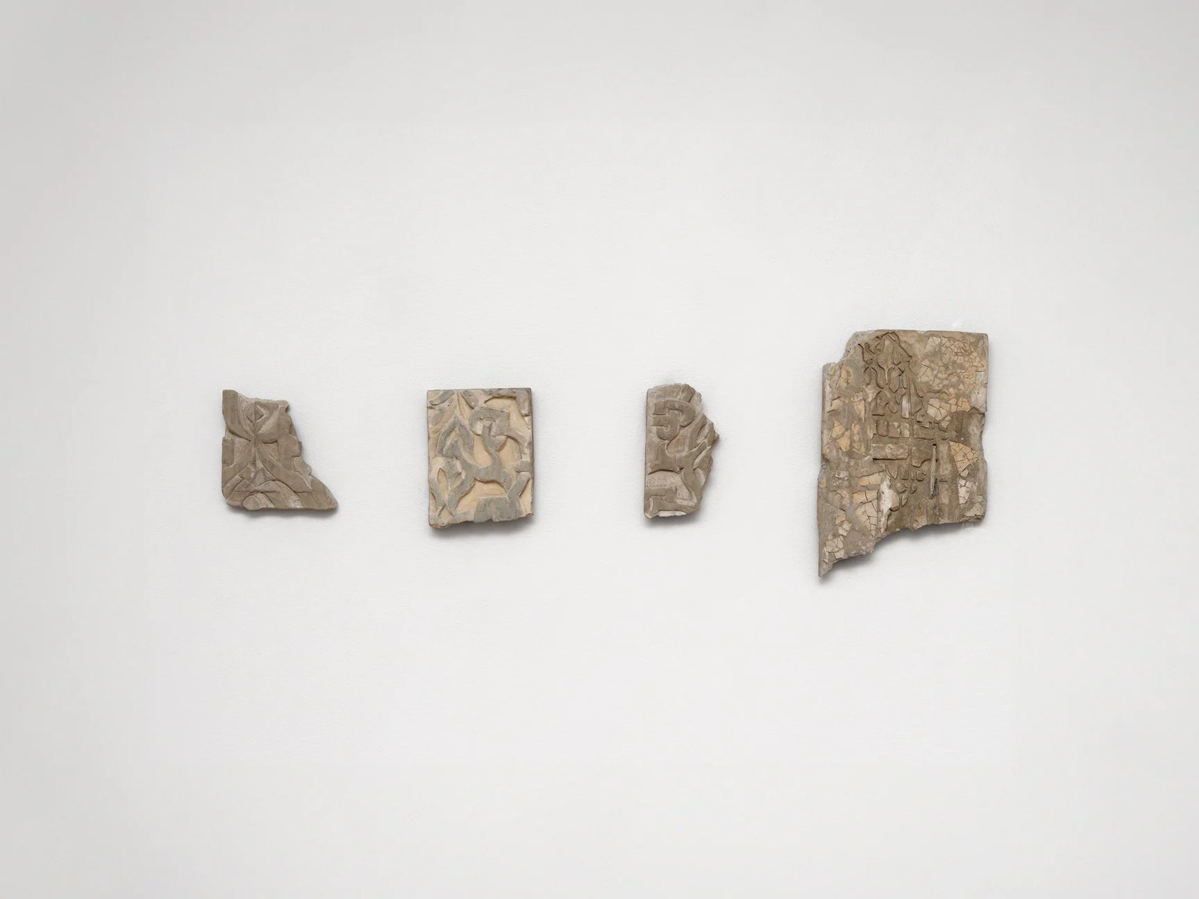 Nour Jaouda, Untitled, 2025, Series of 4 cement relief, Unique, Variable sizes. Photo: Aurélien Mole. Courtesy of the artist, Union Pacific and Hatch Gallery.