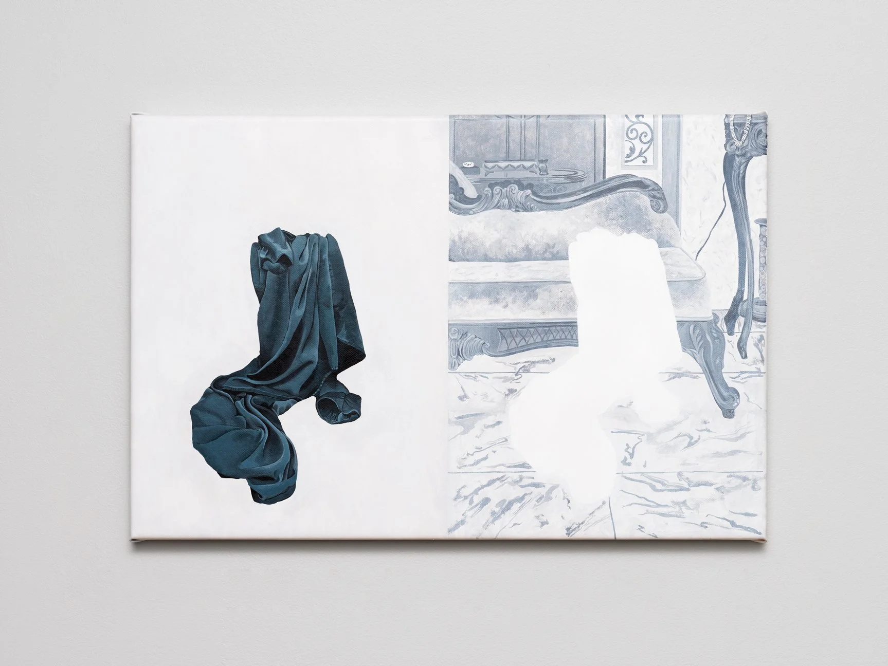 Hayfa Algwaiz, What Lies Beneath, 2025, Acrylic on canvas, 60 x 40 cm. Photo: Aurélien Mole. Courtesy of the artist and Hatch Gallery.
