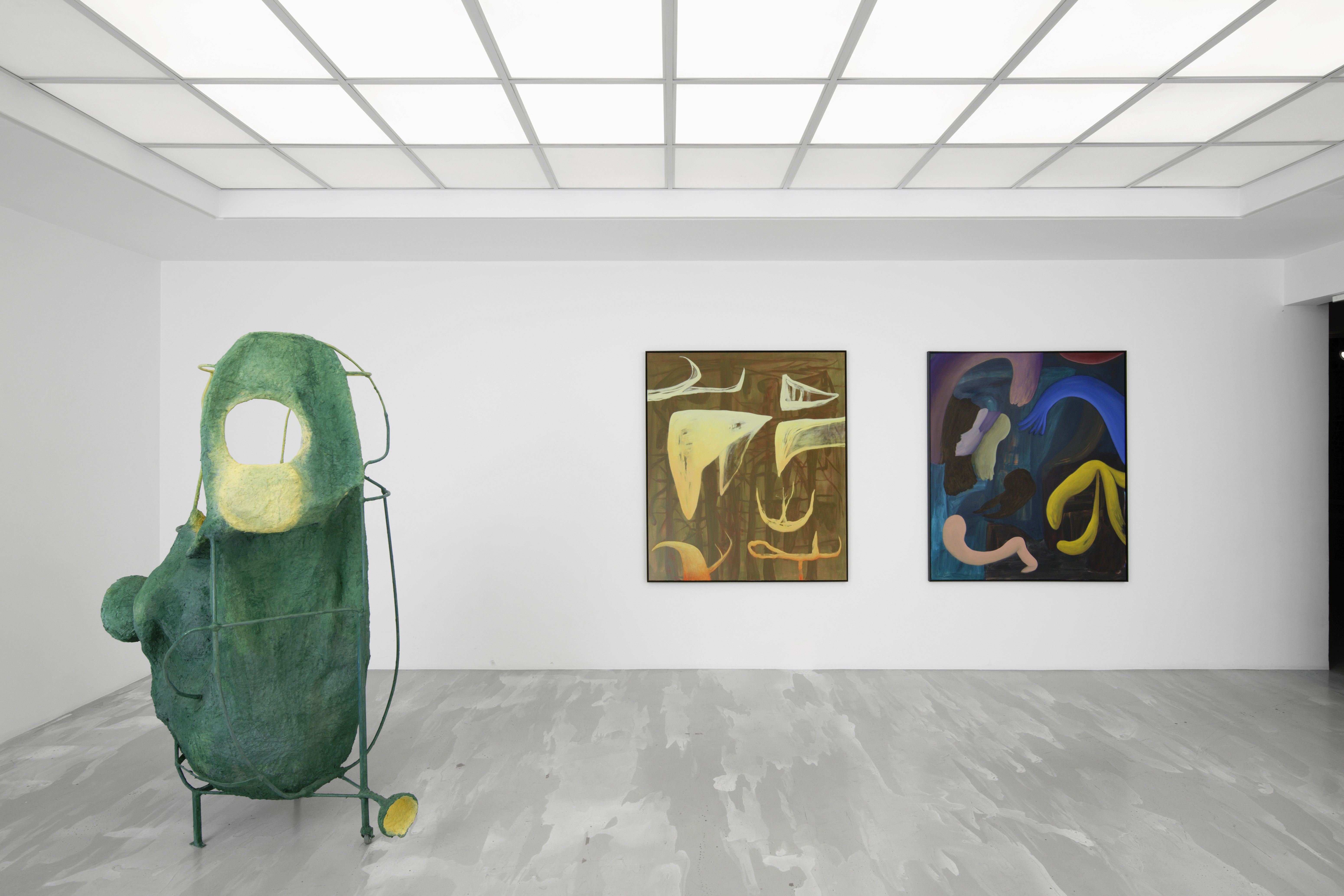 From October 14 to November 4, 2023, Hatch Gallery brings together artists Olivia Bax (born in 1988, lives and works in London) and Veronika Hilger (born in 1981, lives and works in Munich) for a duo show curated by Thomas Conchou. Initiated by Margot de Rochebouët and Giovanna Traversa, the two artists engaged in a sustained dialogue throughout 2023 around their artistic practices. A sculptor and a painter, they discovered numerous shared interests, including a determined and vigorous use of color. Olivia Bax's Boo-Boo (2021) and Veronika Hilger's Untitled 8 (2023), placed in conversation at the entrance of the gallery space, testify to their commitment to a powerful chromatic palette. Along with 6 untitled (2023), they introduce the exhibition as a dynamic conversation between the artists and their mediums. These works alone embody the intentions of 'Confab Window': to create an evocative and inhabited landscape that invites the viewer to wander and introspect.