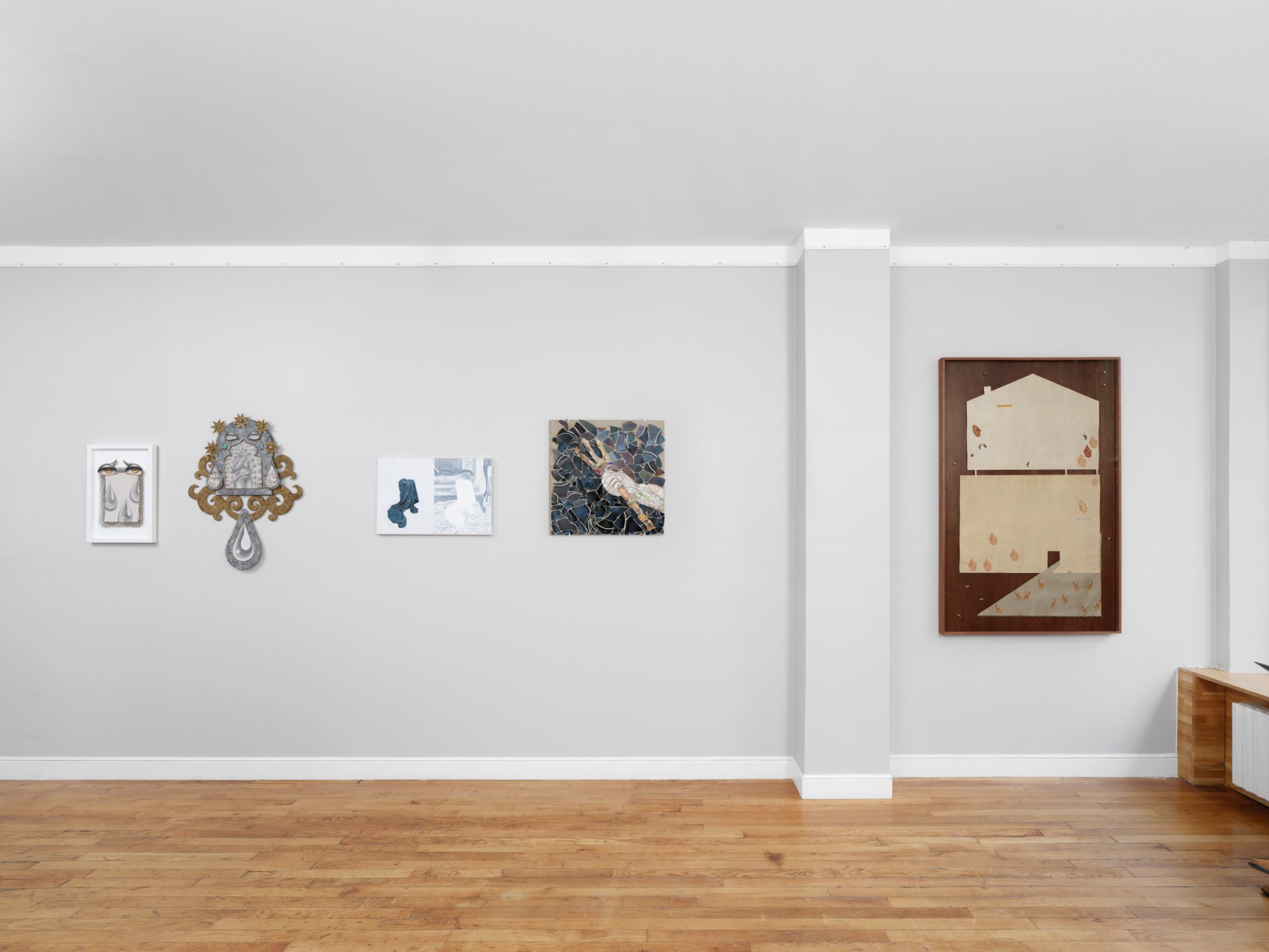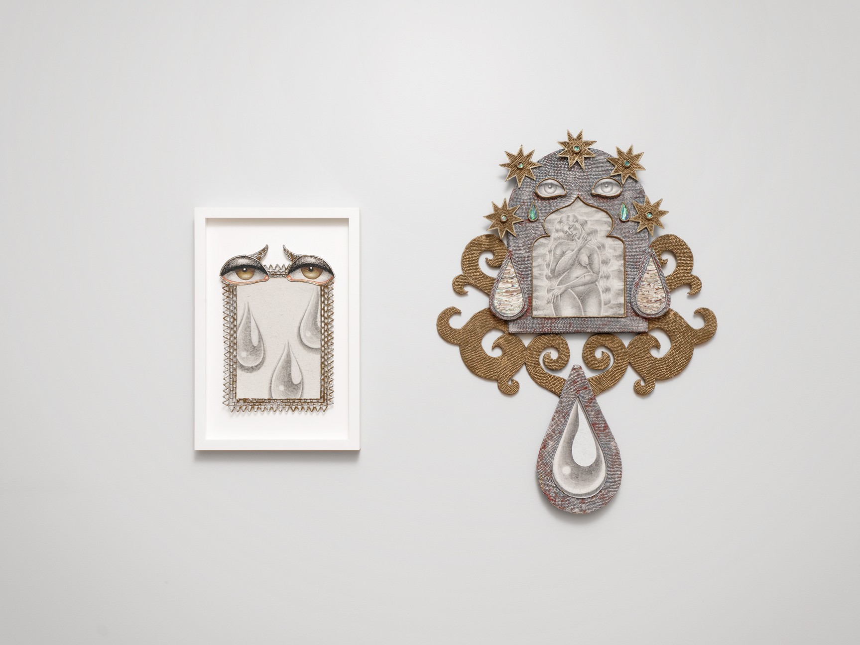 Etel Adnan’s painted and written forms extend across disciplines, reflecting an insistence on mark-making as an act of presence. Hayfa AlGwaiz’s sculptural forms evoke layers of presence and absence, concealing and revealing what lies beneath. Inji Efflatoun anchors the exhibition historically, employing rhythmic expanses of white space as strategies of openness and renewal, transforming painting into a daily gesture of resistance. Emilia Estrada interrogates the nomenclature of the lunar surface as a mirror of colonial knowledge systems, reworking acts of naming as sites of erasure, memory, and speculative cosmology. Nour Jaouda works with cement, a material that holds and fixes, yet paradoxically remains fragile. Lamia Joreige interrogates history and memory through archives, images, and testimonies to uncover the omissions and ambiguities that shape historical narratives. Yasmine El Meleegy works with found materials, domestic objects, and architectural fragments to explore repair, memory, and overlooked histories. Filwa Nazer’s practice engages with veiling and unveiling, where layers of fabric obscure and reveal, resisting singular interpretations. Zayn Qahtani builds imagined ecologies offering speculative narratives about survival, spirituality, and belonging. Laila Tara H transforms individual fragments into an elaborate visual lexicon.