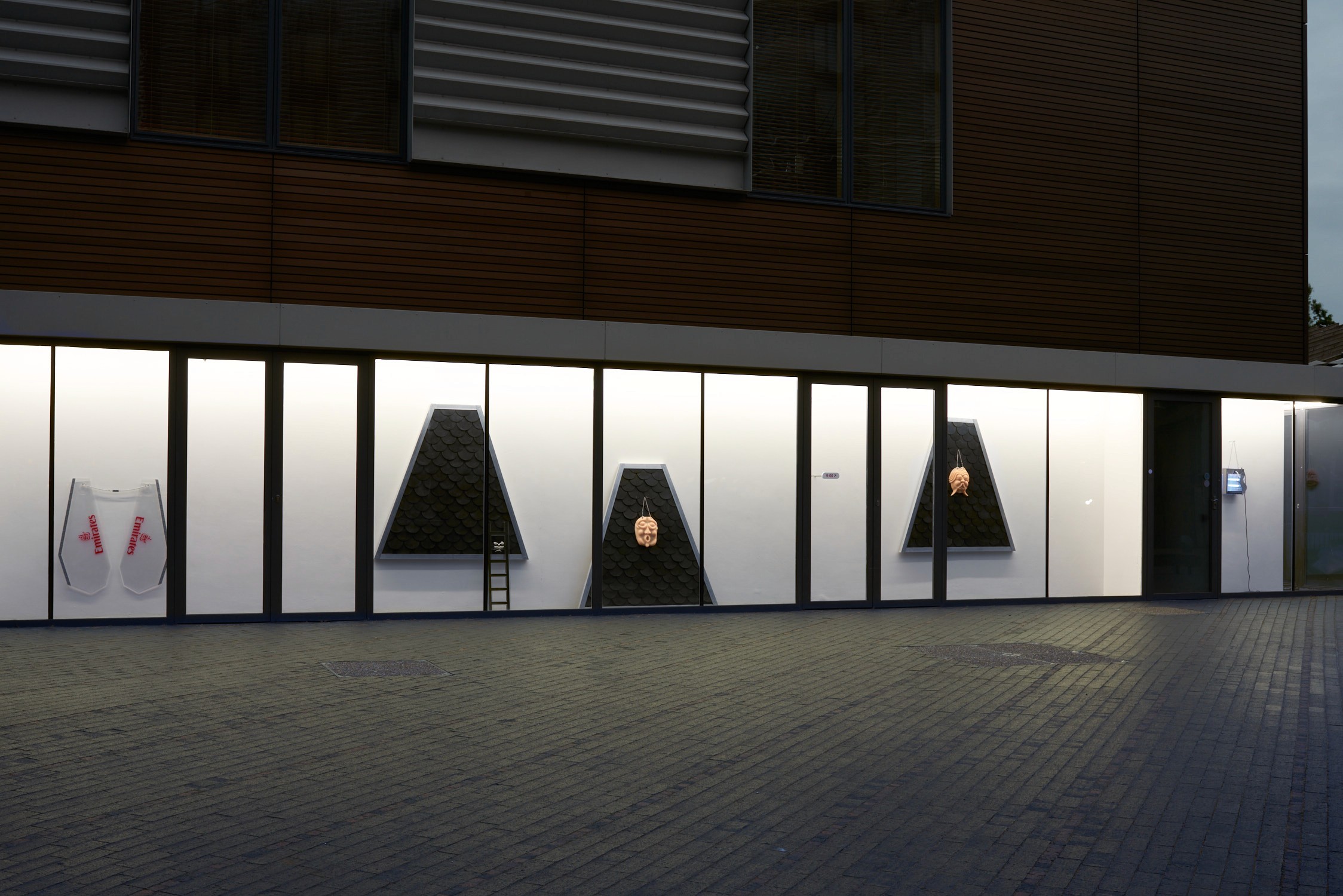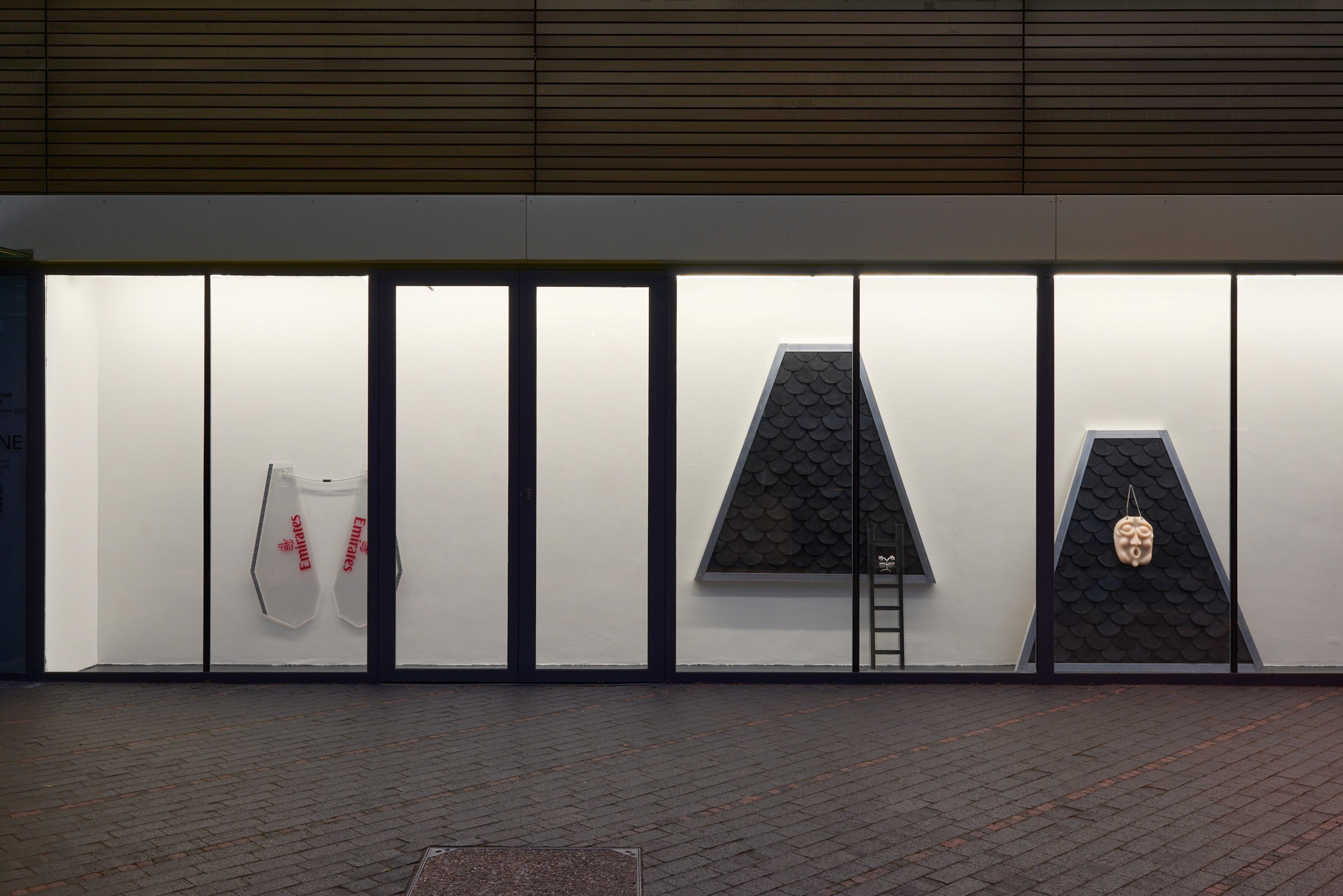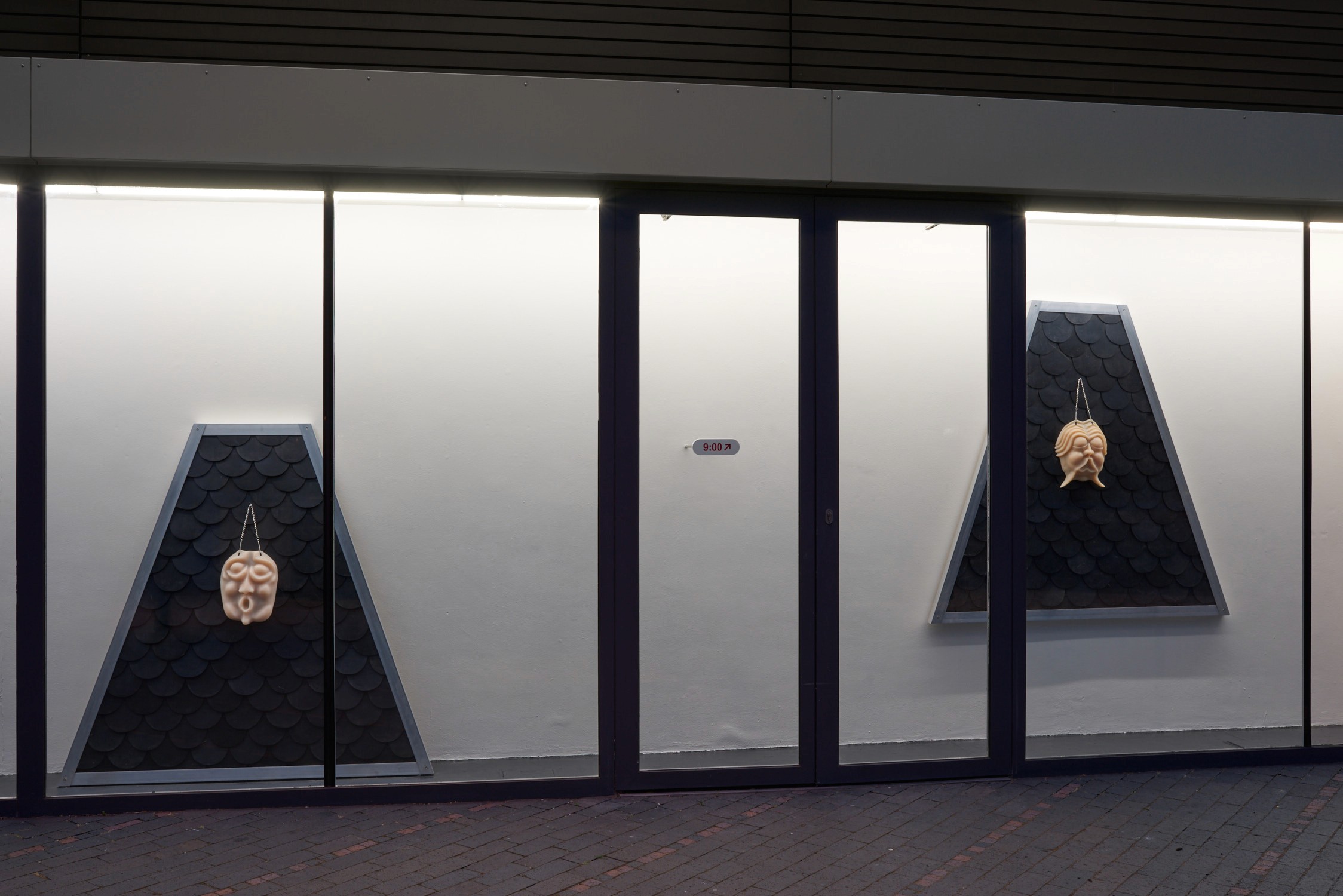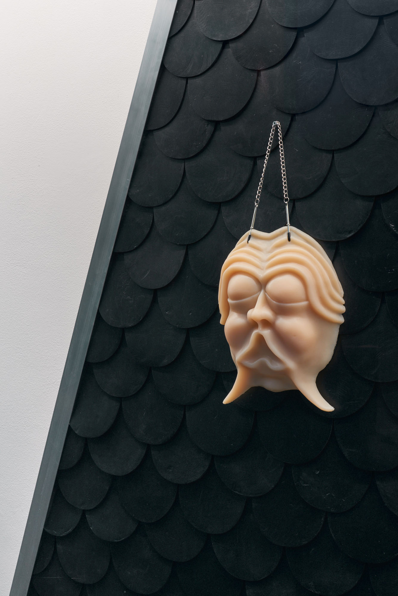 One way of approaching the exhibition is to see how it explores forms of transcendence. Ascension is one of them. The spectator is moving beyond the limits of the physical world. We are entering into a spiritual realm, evoking the feeling of rising above the earth when one starts to fly. There are faces in silicon in the exhibition. They are inspired by the Mostasu: “talking statues” that served as an outlet for the frustrations and complaints of the people. The reference to this popular form of confession, coexisting with more traditional Christian confessions, introduces a more ambiguous take on transcendence and spirituality. The Mostasu is a hybrid sitting somewhere between the insect, the human and the animal. The use of silicon not only refers to human flesh but also to sexuality, as if we were looking at the repressed in religion.