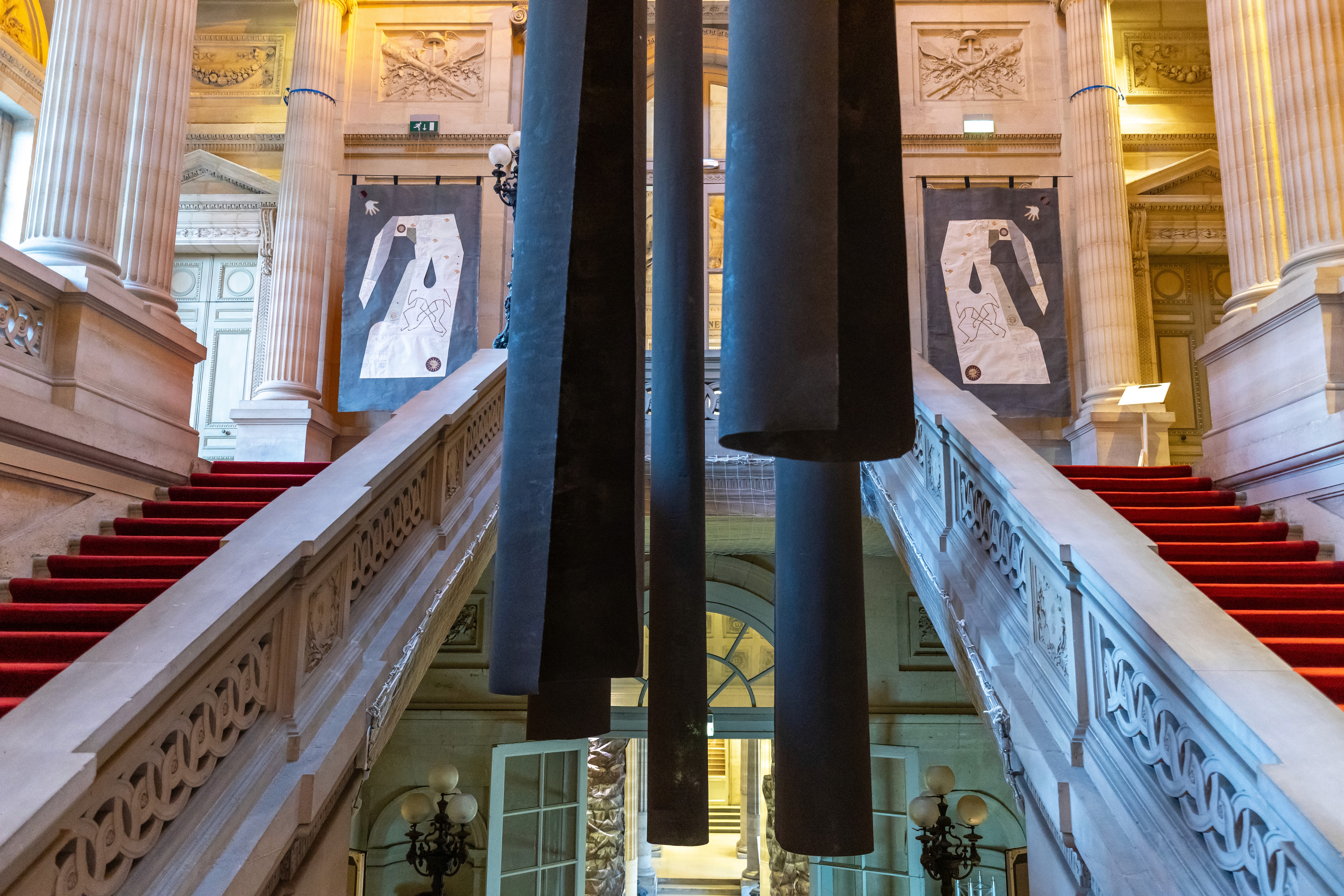 For Asia Now Paris 2025, Laila Tara H presents Loqmé, a site-specific installation unfolding across the grand staircase at the Monnaie de Paris. Composed of a single monumental kaftan and a sound piece, Loqmé carries centuries of cultural and sartorial history from the Parthian to the Qajar periods, operating as a timeless form. The installation stages a theoretical place in which memory is held and cycles, exploring nationhood as a condition and interweaving historicism and the personal.