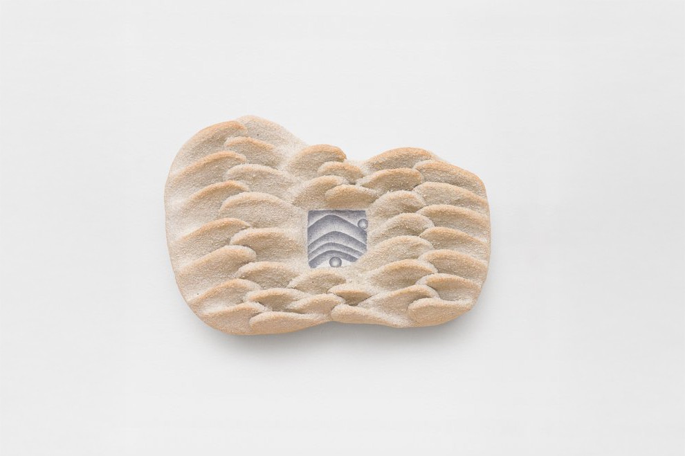 Graphite on ceramic, 25 x 23 x 6 cm.