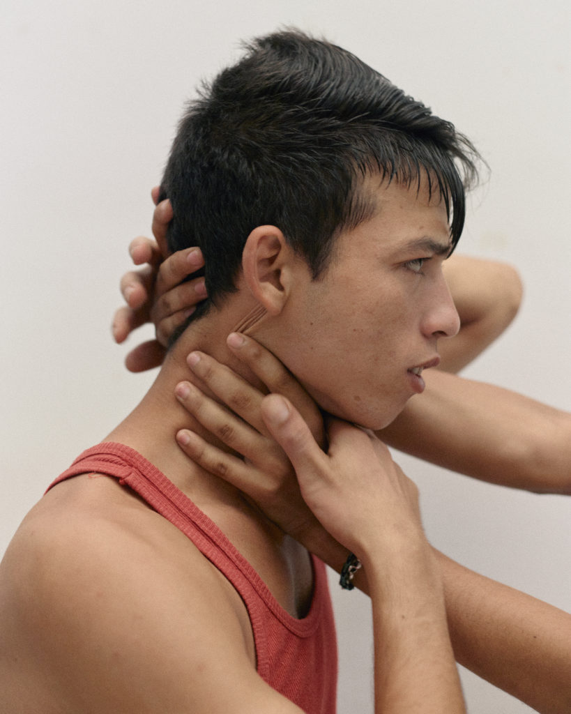 In Dialect, the body is examined in its relationship with official authority. “Crossing the border involves a physical effort that questions the body in all its forms and metaphors," writes Juan Bockamp in his text Stepanov Notation for the piece Instruction. The robust anatomy of these young individuals hints at their desire to construct a new image of themselves. Far from emphasizing any form of masculine virility, Dialect narrates the drama of abandoning one's roots in pursuit of physical and identity reconstruction. The young people tend to their bodies and train to face an uncertain tomorrow; is there a hint of self-challenge in their obsessive sports practice ?